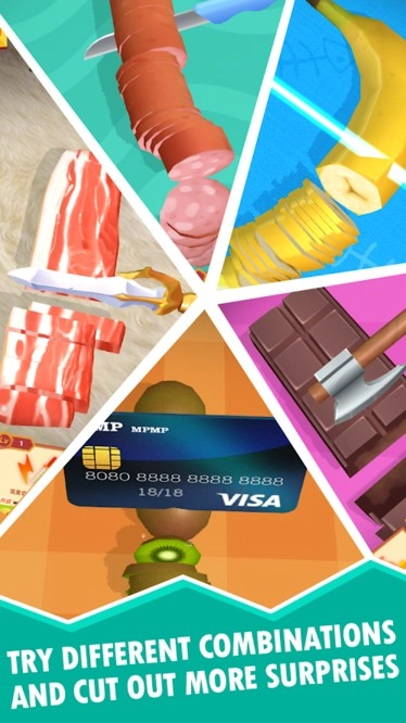 从动画刀具里选一款你最钟爱的,把食材切成尽可能多的小块。切得越精准,获得的时间就越长。随着游戏不断推进,你会发现各种各样让人兴奋的特殊动作,完成连击还能解锁更棒的食材。提升精准度、磨练技能,就能拿到额外的嘉奖食材。你的分数在很大程度上取决于切割的难度,甚至是奇特程度。