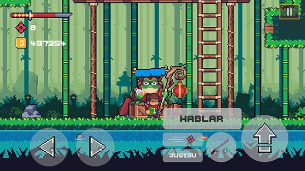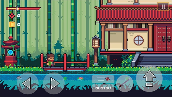 忍者佩佩这款游戏运用了经典的像素风格画面,地图设计得十分丰富多彩,并且会有不少趣味事件发生,为玩家带来了丰富有趣的探索内容,玩起来非常有意思,是一款相当好玩的横版动作闯关游戏。