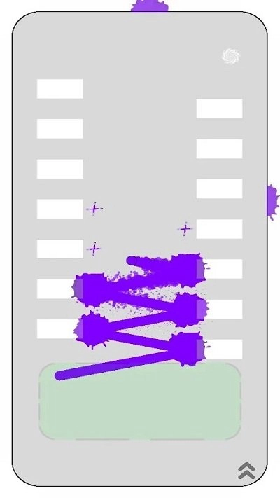当新的白色长条障碍出现时,我们重新调整了小球的弹射轨迹,借助蓝色长条的弹力特性,使小球能够精准避开障碍,全力向目标螺旋标识进发。