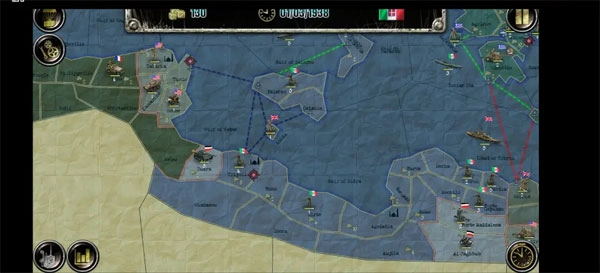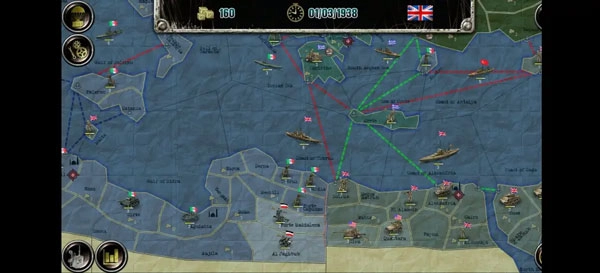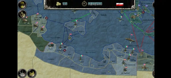 初始兵力配置如下:舰船31艘,战斗机6架,轰炸机4架,陆军师42个。