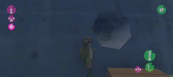 进入游戏后,操控青蛙在房间里找到一扇绿色的门,接着走出去。
