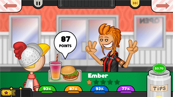 完成餐点制作后,将其递送给顾客,顾客会对你的服务进行评分,评分越高,你所能获得的金币数量就越多。