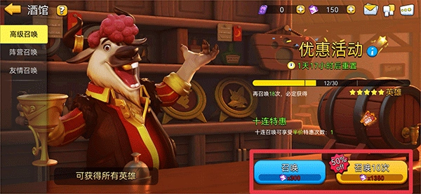 游戏里有许多能收集的英雄角色,你可以用召唤卡或者钻石在酒馆里抽取新角色。