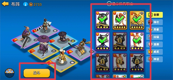 进入战斗界面后,先布置好出战阵容,接着点击“开始战斗”按钮,系统就会自动进行对敌作战。