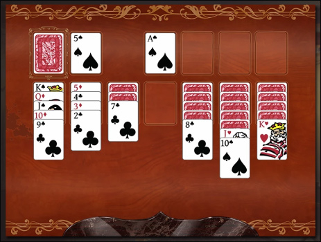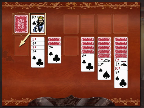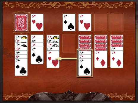 你可以把面板上任意正面朝上的纸牌移到另一个牌堆,条件是该牌堆的顶牌要比被移动的牌大,而且两者颜色不一样。