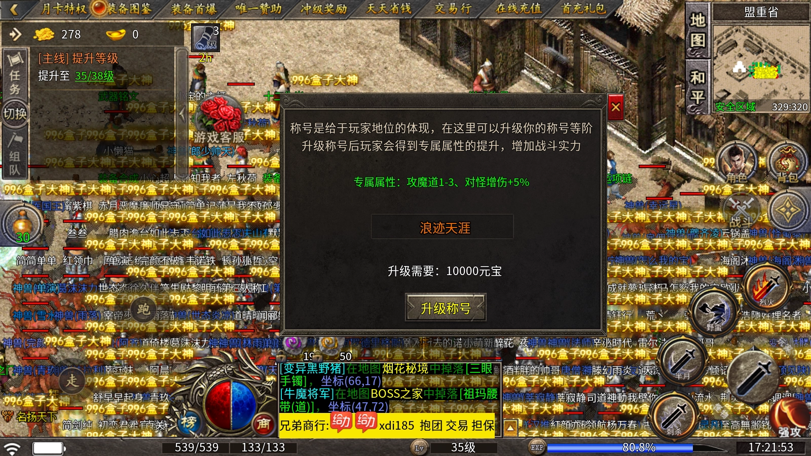 称号:称号是玩家地位的象征,在这里可以提升你的称号等级,升级称号后玩家将获得专属属性的增强,提升战斗能力!