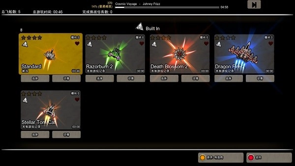 战机的设定划分得挺清晰:暴力输出型、高射速型、小型敏捷型、综合型,另外还有一种盗贼类型(能吸附掉落物)。具体讲起来太繁琐,大致情况就是这样。