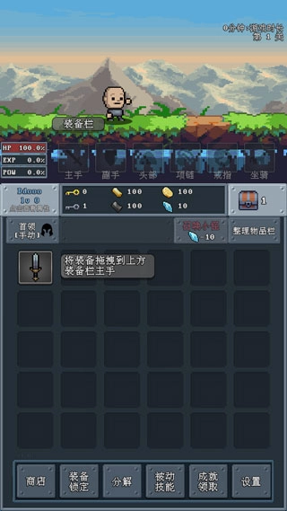 然后就可以开始游戏了,按照提示为角色装备武器;