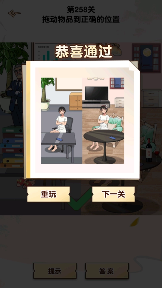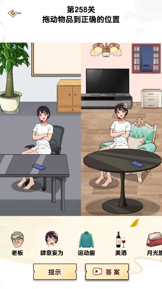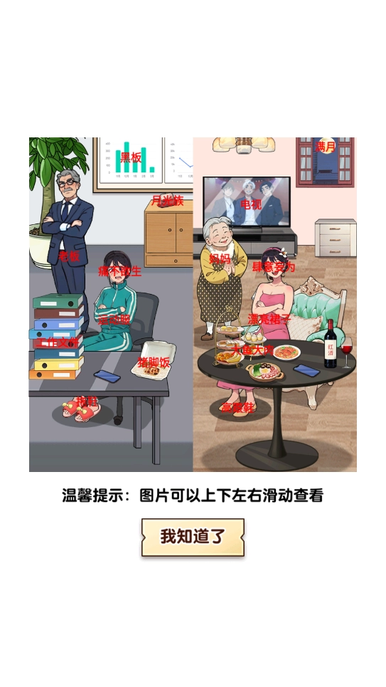最后需要玩家操作的是下拉的手提袋,以及上滑红衣服女孩口袋里的手机