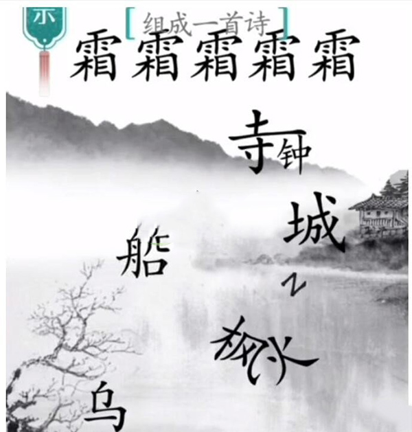 接着把【雨】【木】【目】组合起来构成【霜】字,再将其向右拖动排列成一排,如此便完成了第一句诗【月落乌啼霜满天】。