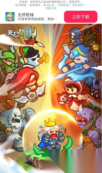 《无尽防线》是一款融合了肉鸽玩法与策略塔防元素的游戏。它采用色彩明快的动画风格,构建出一个充满魔幻气息与沉浸感的虚拟世界,同时还融入了丰富的剧情故事。在游戏中,玩家将化身为王国的领袖,亲自组建实力强劲的战队,抵御黑魔法对领土的侵蚀,解救身处危难之中的民众。游戏的操作和玩法都十分简单易懂,能让所有玩家都轻松享受到游戏的乐趣!