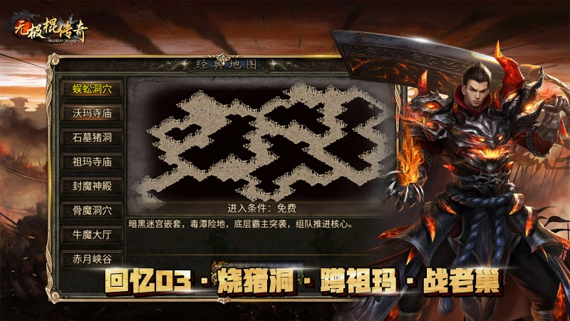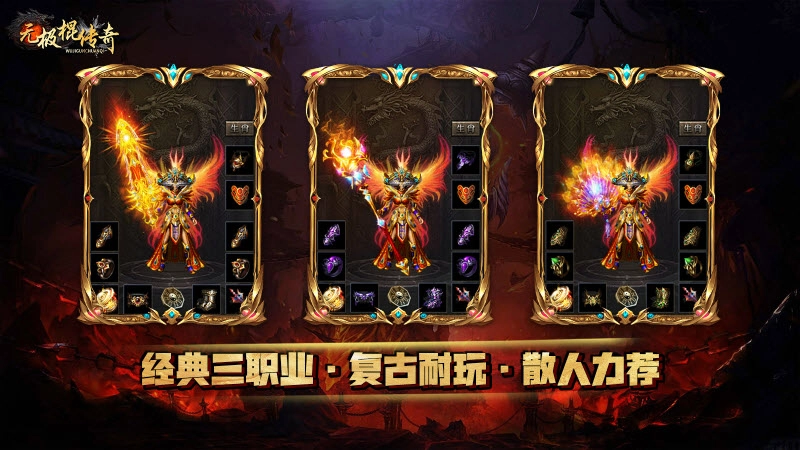 《无极棍传奇》,一款1.80版本的复古三职业传奇游戏。它延续了经典的战法道三大职业设定,每个职业都保留着独特的玩法与魅力。玩家能够操控角色在这片传奇大陆上开启自由冒险之旅。游戏内拥有多样的地图场景,为探索提供了充足空间;不同类型的怪物还会掉落各类装备与材料,兼具趣味性与耐玩性。