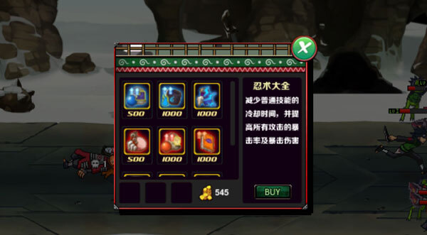 开局会获得50枚金币,通过击败敌方忍者、小兵和防御塔能够获取更多金币,对局结束时积累的金币可以用来解锁奥义技能。