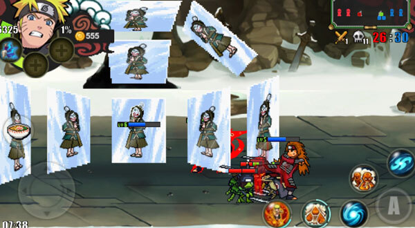 英雄的两个奥义技能会在当局战斗内的2级和4级时解锁,释放奥义技能需要通过承受伤害来积累查克拉(也就是怒气值)。另外,战斗界面里还有回血技能,这个技能不需要消耗蓝量,但会消耗当局战斗内的金币。
