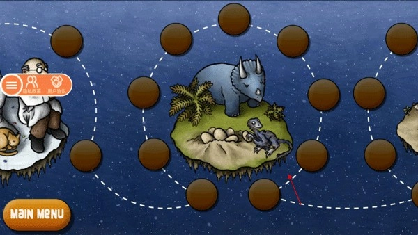 一般模式(闯关模式)里有关卡预览功能,在这个过关模式中包含多个世界(领域),我们的冒险将从实验室开启,随后还能穿越到恐龙世纪,这听上去是不是很刺激?实验室研制出了这个怪物,后来它似乎吃掉了某种时间机器,于是便穿越回了上古时代,接着就可以捕食恐龙了。