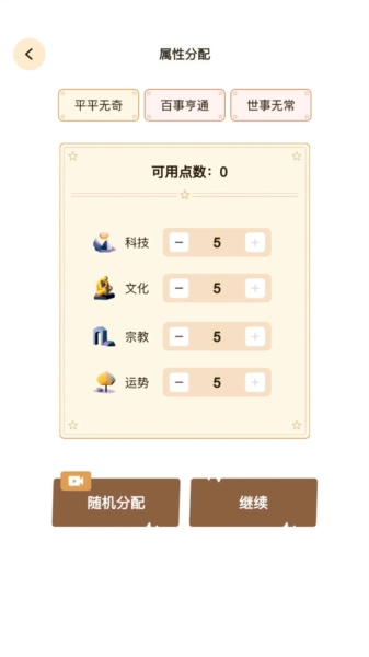 游戏采用简约设计风格,以纯白背景搭配直观的操作界面,让玩家能轻松上手。从随机抽取的三张天机卡中,玩家可分配属性点数,打造出独特且极具个性的文明。每一轮文明发展都会展开不同的故事,玩家可依据自身兴趣来定制文明的走向。