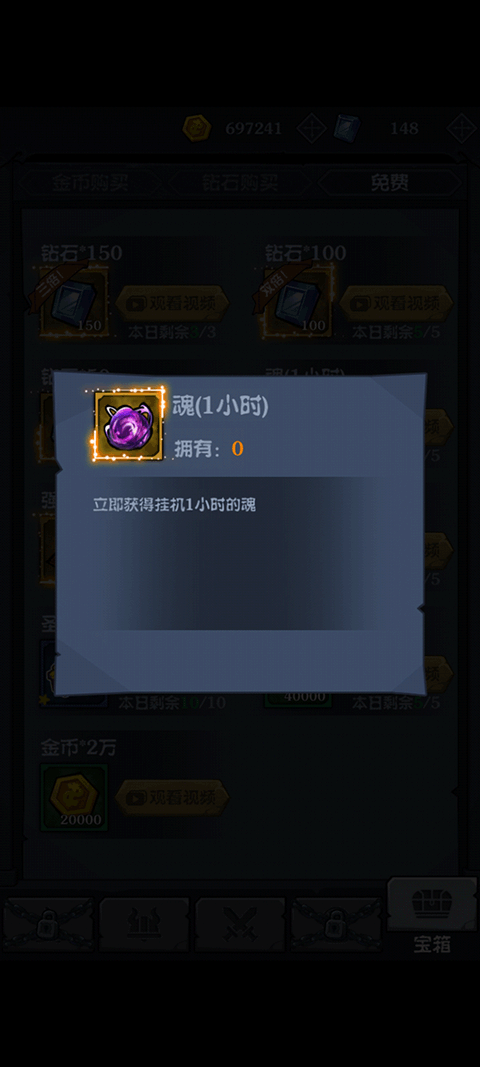 ①在宝箱页面看到的“魂”,其实就是游戏里用于角色升级的经验道具。使用这个“魂”后,能立即获取等同于挂机一小时的经验值,帮助玩家更快提升等级。