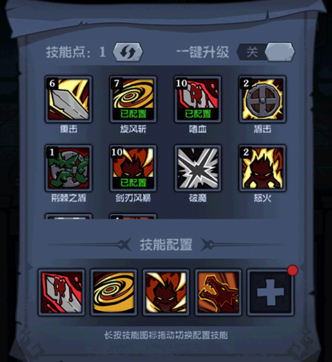 战技方面建议优先选吸血和群攻,先把吸血点到10级,之后再逐步提升群攻等级,这样冲层基本不会有太大问题。等升到六十级,点出龙咆哮组成完美技能组,就能轻松刷怪,体验相当不错。
