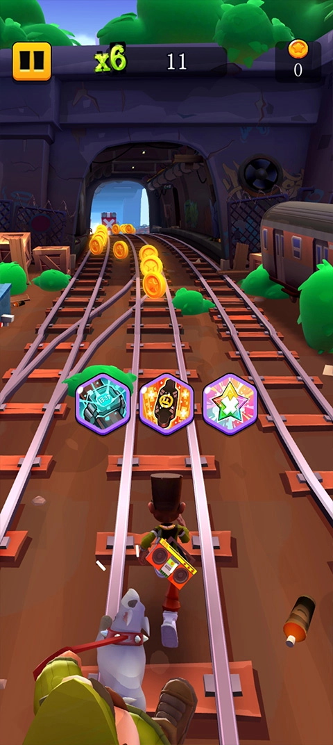 在游戏过程中,我们不仅要避开各种障碍物,还得尽量收集铁轨上出现的金币。收集金币不仅能帮助我们获取更高的游戏分数,还可以用来解锁或购买其他角色。