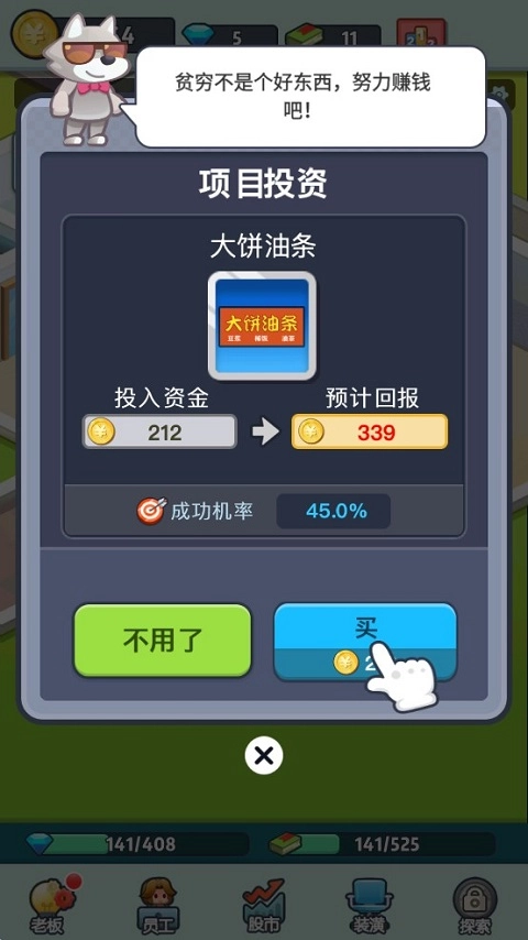 扩充自身的产业规模,尝试放置挂机类的挑战任务,开启专属于你的投资之旅。