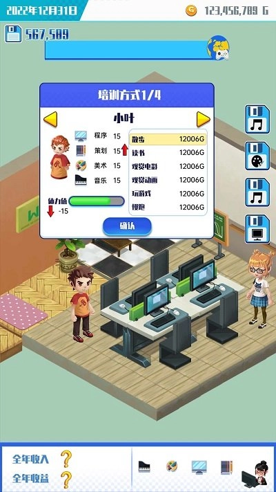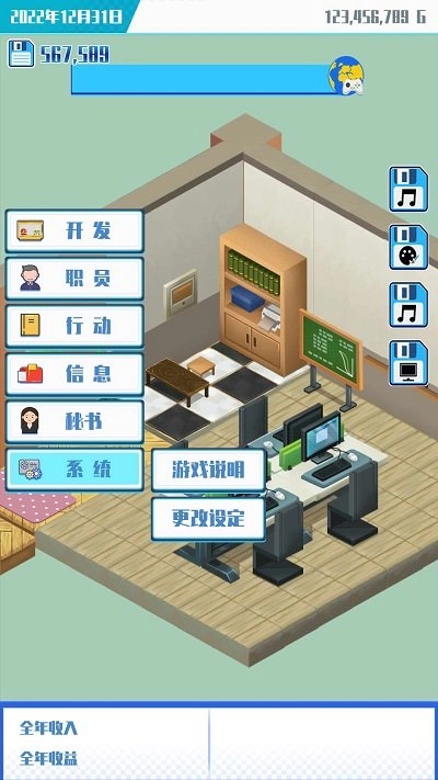 在游戏里,你能决定公司的发展重心是PC端还是移动端。依据不同的重心选择,你后续投入的资金数额和人力调配方式会有所区别。这款游戏的玩法要求玩家具备一定的规划能力,整体游玩体验也十分合理。