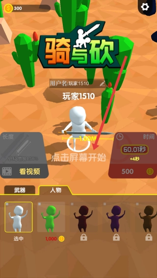 在游戏开局界面,点击屏幕即可操控“玩家1510”角色,骑乘武器,准备开启“骑与砍”竞技对战。