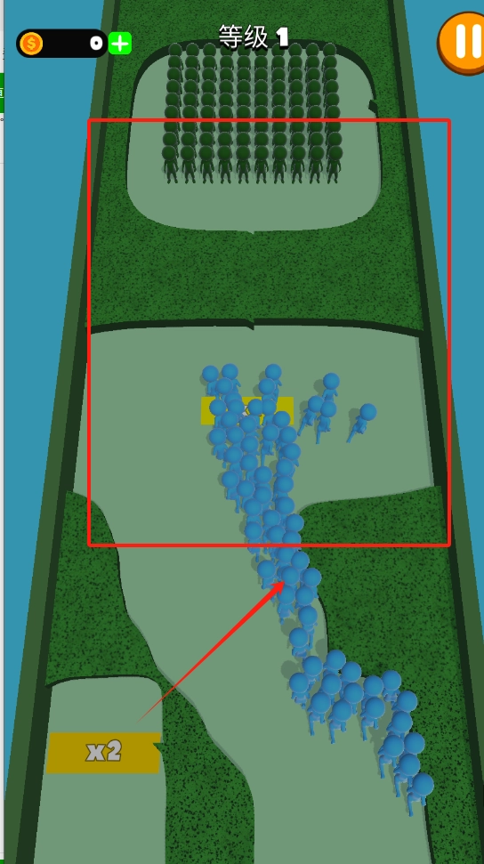 把目光对准蓝色小人聚集的地方,点击右侧的勇士+10或者勇士×2按钮来升级队伍。