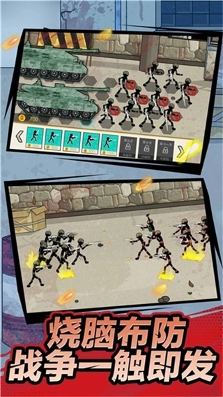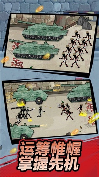 火柴人部队的部署安排,借助部队规划这一方式能够轻松达成作战需求,只要完美击败敌人,就能获取资源材料与道具。