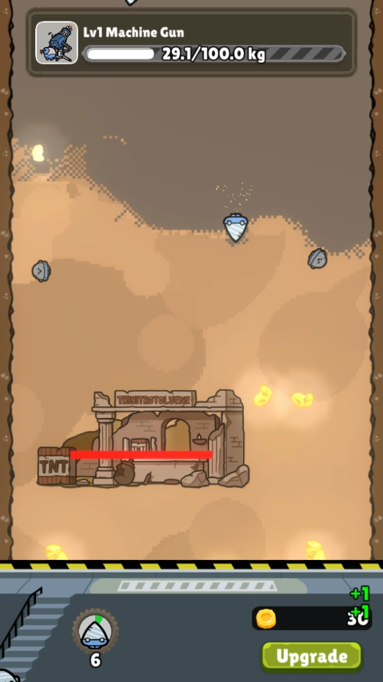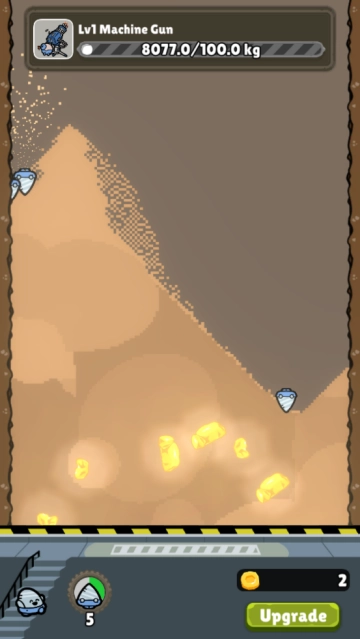 玩家只需进行简单的弹射操作,把矿工发射到地下,就能看着他们自动挖掘泥土,收集到丰富的资源和黄金。
