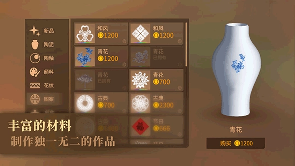 创作瓷器的体验与经营玩法实现了有机衔接,比如经营获得的货币能用来购买花纹、图案、颜色等更多自定义素材,培养的学徒出师后可代劳完成烧制步骤,做好的瓷器评级会影响展览影响力,进而直接关系到展览收入与玩家成长,两套机制融合得相当出色,不会给人割裂或生硬的感觉。