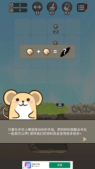 -请横竖滑动2048拼图,合并相同类型的图片。-获取的饲料能够用于扩张区域、建造建筑或者领养仓鼠。