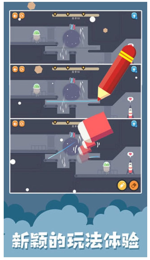 3、在蠢蠢的画笔游戏中考验你的脑力,融合物理原理,想出各种办法闯关。