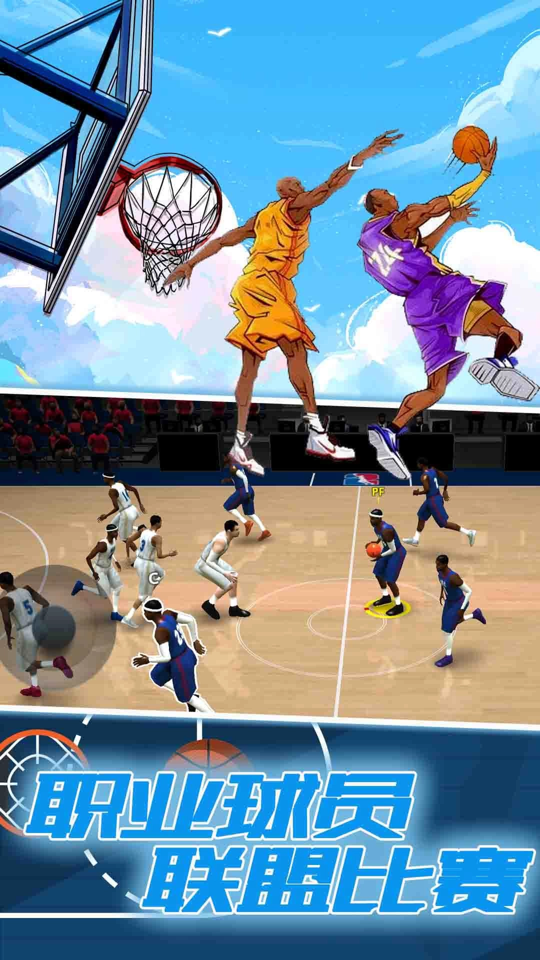 职业生涯: 玩家可以自定义专属角色,开启独特的篮球职业之路。在这条道路上,通过参与各类比赛积累实战经验、坚持系统训练打磨技术细节、针对性提升各项核心技能,角色将一步步在职业联赛中获得关注、站稳脚跟,最终成长为篮球界的传奇巨星。