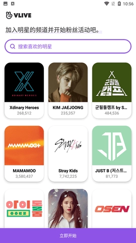 1.首先打开VLIVE应用,搜索你喜爱的组合。