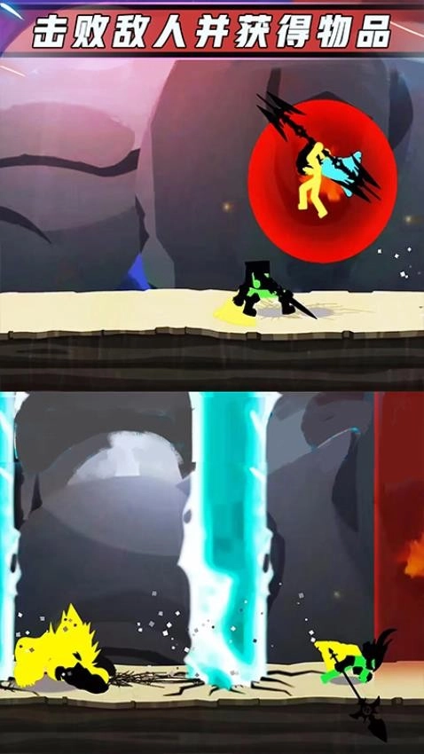 3、有些其他颜色的火柴人会有不同的招式,玩家点击火柴人能够进行攻击。