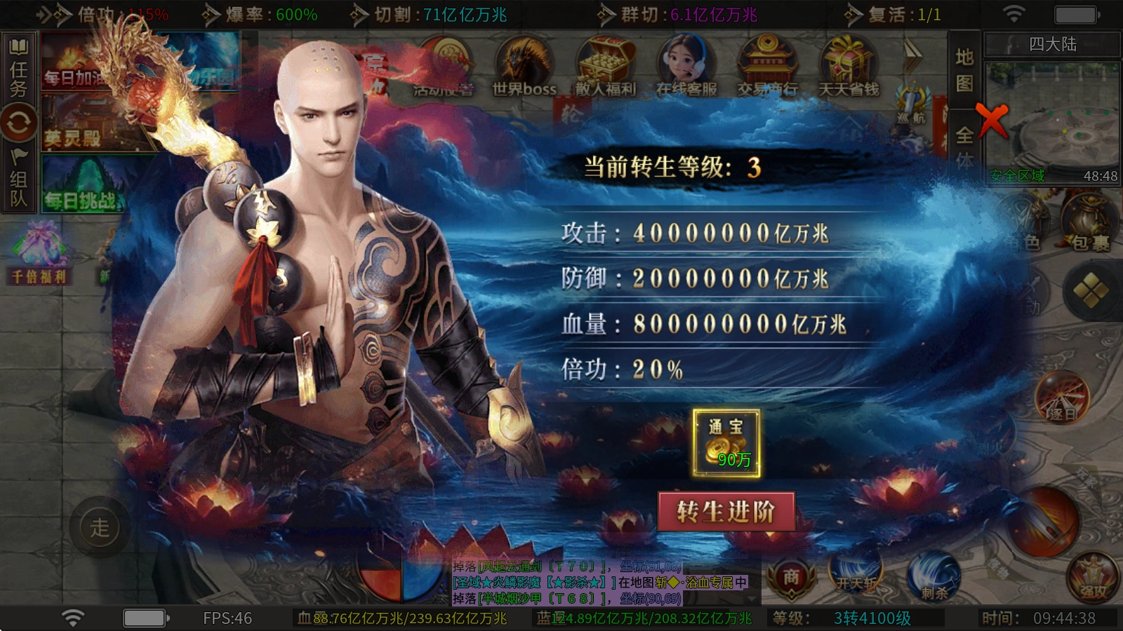 转世轮回:消耗通宝就能实现进阶,每提升一阶都会带来大量强力属性,还能提供倍攻加成。