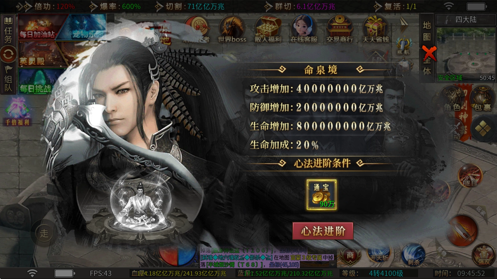 心法境界:消耗通宝就能完成进阶,增强攻击、防御与生命值,还会给予百分比的生命加成。