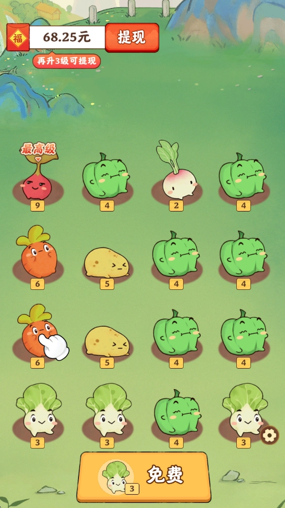 进入游戏后,点击下方按钮,系统会依据当前作物的最高等级,随机发放一颗作物。