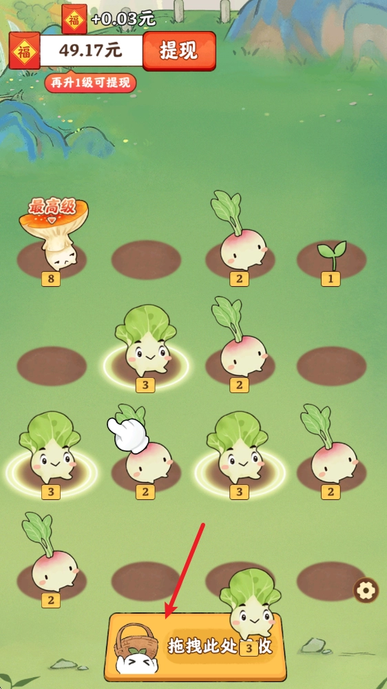 把相同的作物拖到一起重叠,就能合成出更高级的作物啦。