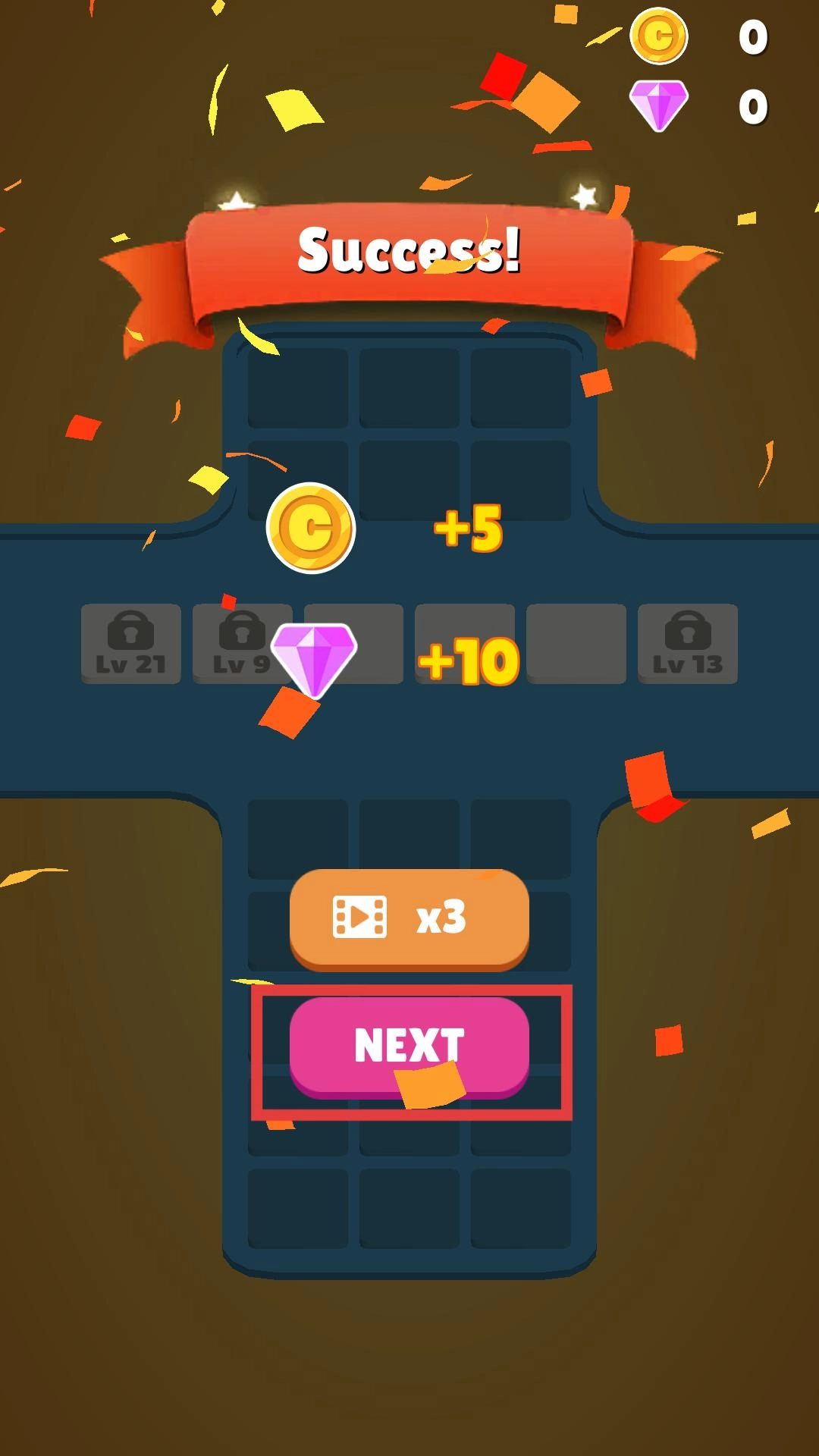 关卡通关后,点击NEXT按钮进入下一关,此时可以选择观看广告来使奖励翻倍,通过这种方式积累金币和钻石,这些资源可用于解锁新的动物或者道具。