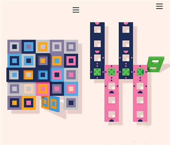 游戏画面采用清新简约的风格,每一关都会向玩家展示色彩缤纷的方块,这些方块的组合形式十分丰富,长条、田字、环形等形状一应俱全。玩家需要通过翻转色块,让相同颜色的方块消除,最终使背景板变得干净整洁。游戏的音效设计十分到位,在翻转色块时会发出类似齿轮转动的声响,就像在调整钟表一样,能让人感到心情愉悦。