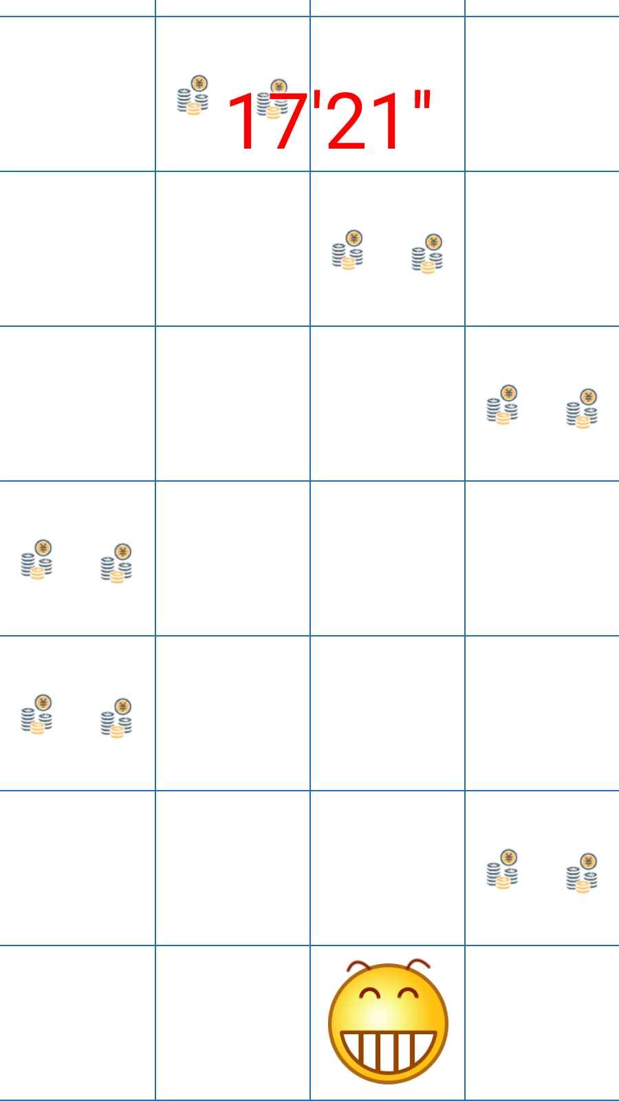 游戏里的方格中会随机生成金币与表情包,金币是玩家需要收集的对象,表情包则属于陷阱,一旦点击就会减少玩家的金币数量。