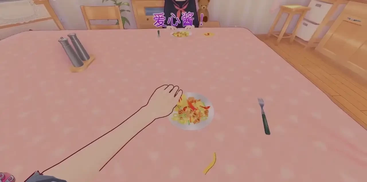 玩家取回剪刀返回厨房时,我们的米塔老婆已经准备好一桌丰盛的大餐啦!