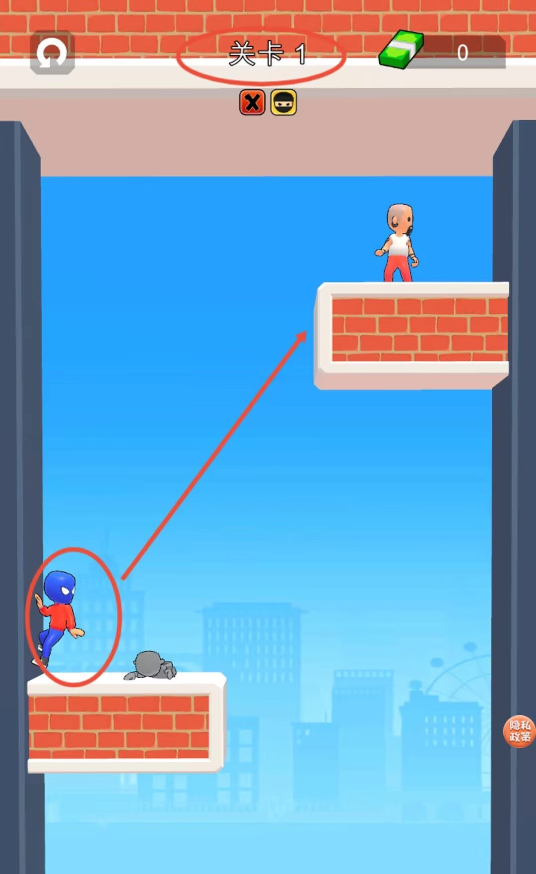点击屏幕开启关卡挑战,界面顶部会显示当前难度以及货币余额,长按并拖动来瞄准敌人就能触发攻击动作。