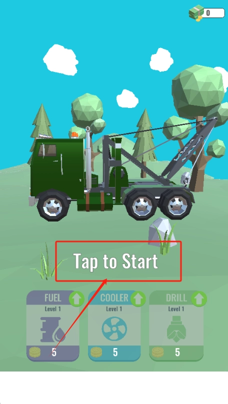 点击“Tap to Start”即可开启游戏,要留意下方显示的燃油、冷却器以及钻头的数量。