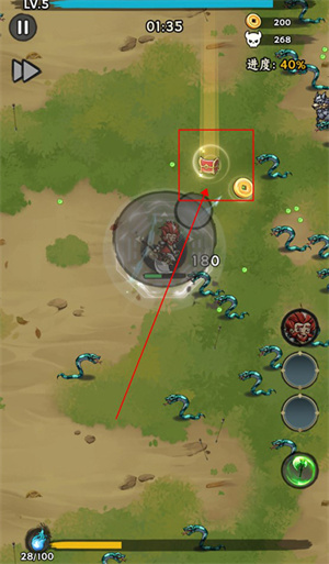 击败地图内的小BOSS后,你能获取宝箱与金币;开启宝箱可参与技能和金币的抽奖,进而提升自身战斗力。
