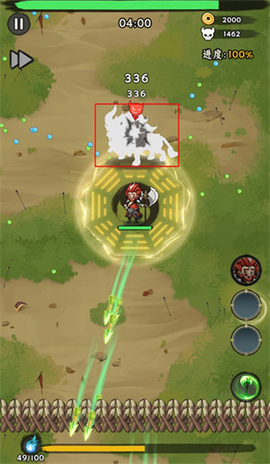 玩家能通过拾取地面上的小经验球来升级,每次升级后都会进入技能选择环节,此时可以从三个额外的被动技能里挑选一个,以此增强自身的战斗力。而且这些技能是可以重复选择来提升效果的,小编建议开局时选择八卦阵,这样能更轻松地消灭敌人。