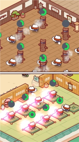 玩家能够自主拓展教室、食堂、宿舍以及训练场这类设施,每一次升级都能让收益和性能得到同步增强。空间的合理运用与设施的优化调整都得认真思索,以便为猫忍者们构建出一个高效且舒适的环境。