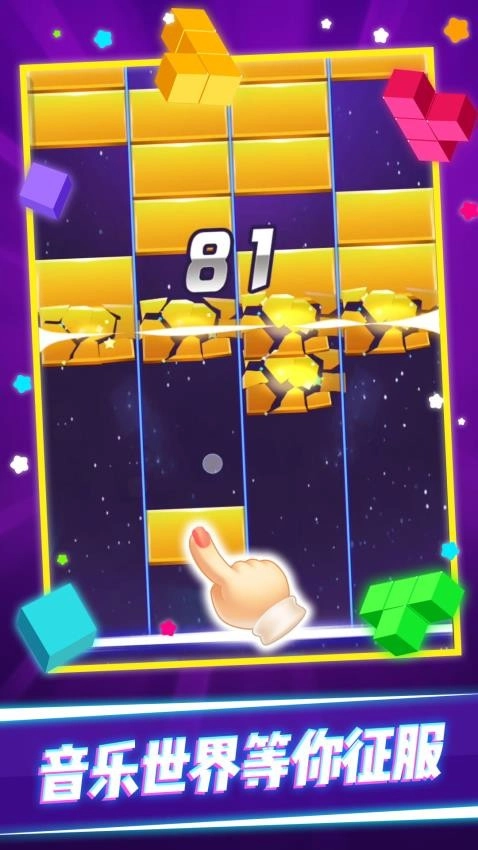 方块下落路线简洁明了,只要仔细观察,就能精准点击得分,基本不会有太复杂的情况,趣味性特别强。