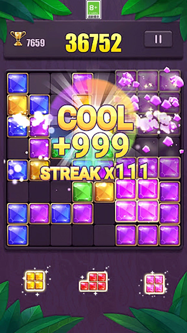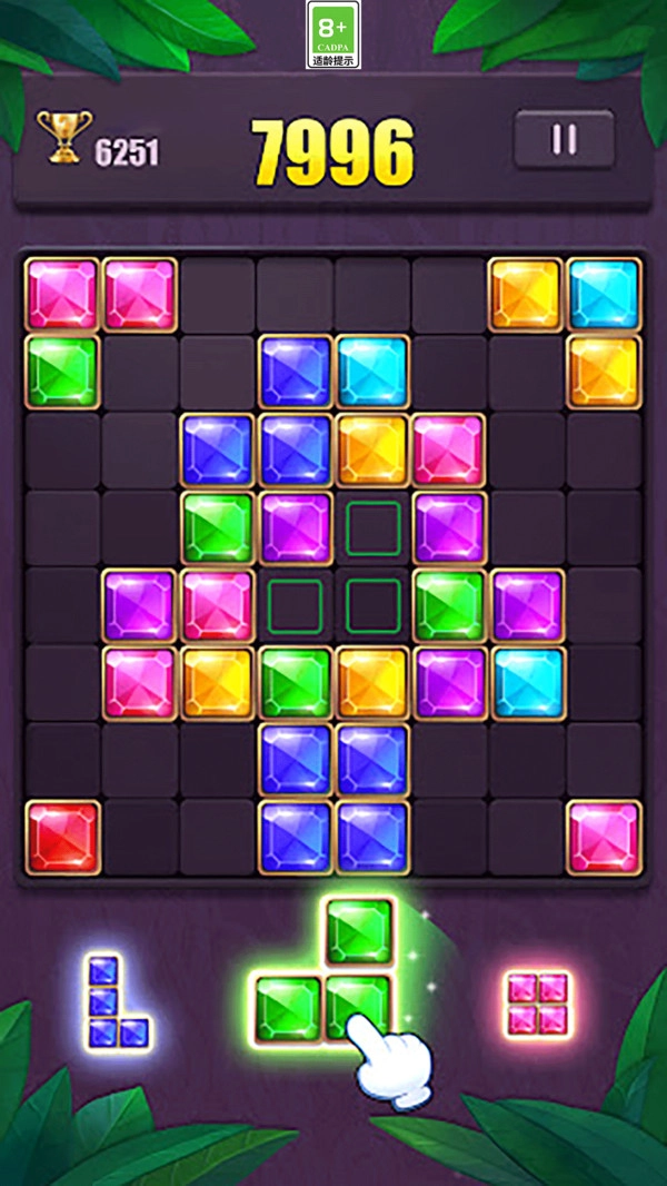 【精致画面,清爽体验】清爽的界面设计搭配丰富多样的方块图案,带来愉悦的视觉感受,让游戏过程充满更多乐趣;